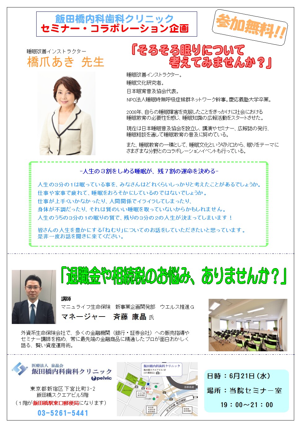お問い合わせ、お申し込みは03-5261-5441までお電話下さい。
